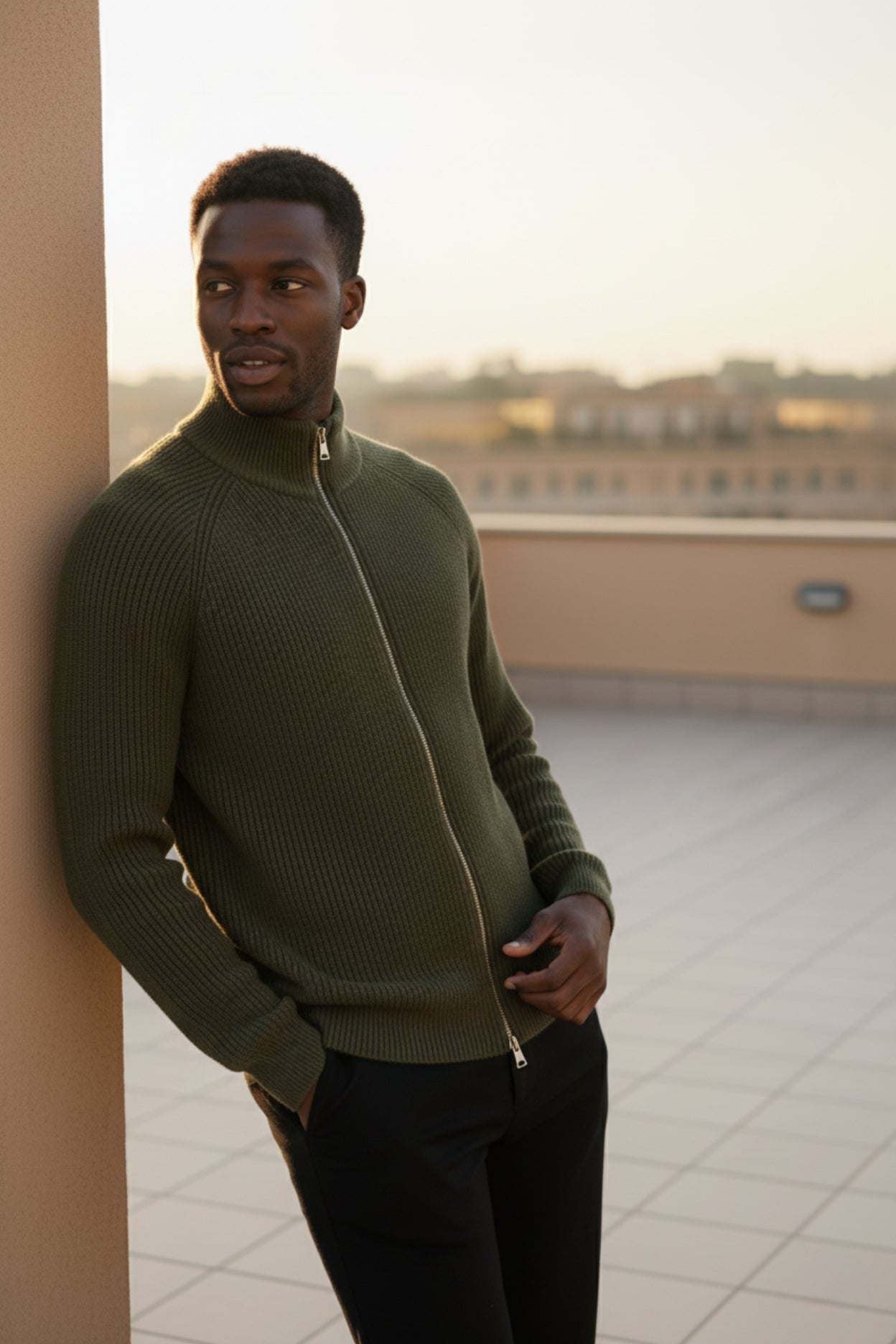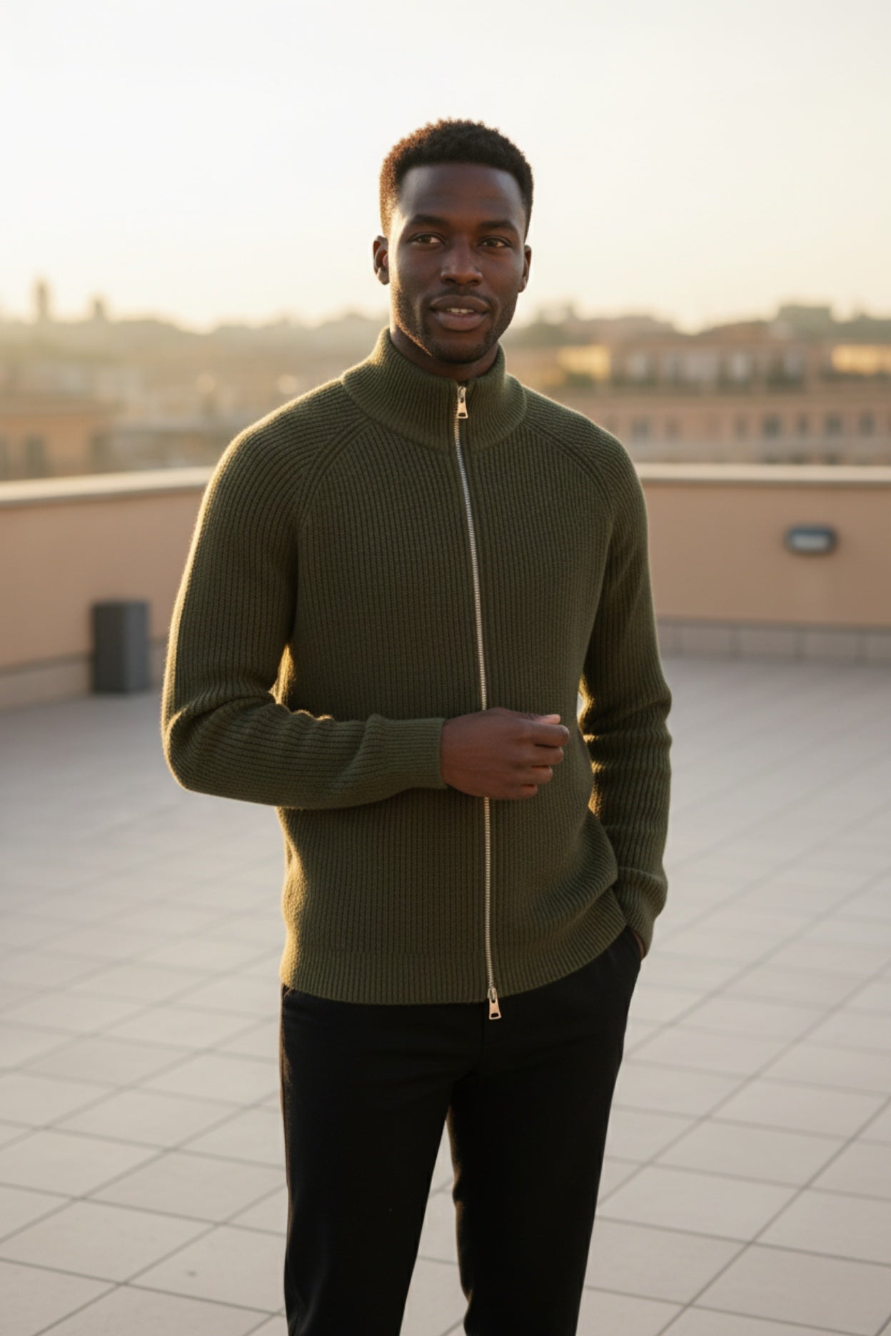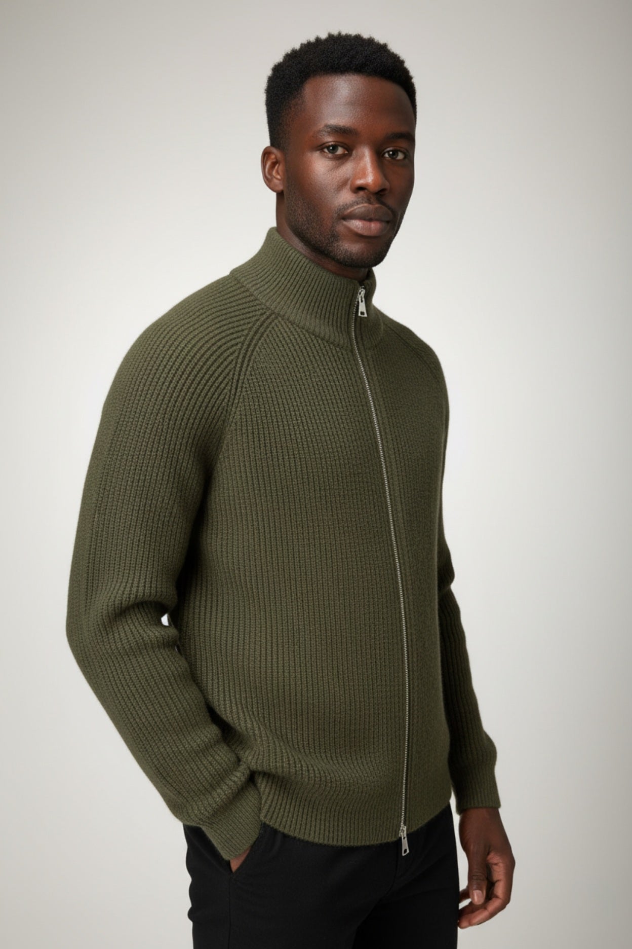 Olive Zip-Up Knit Jacket