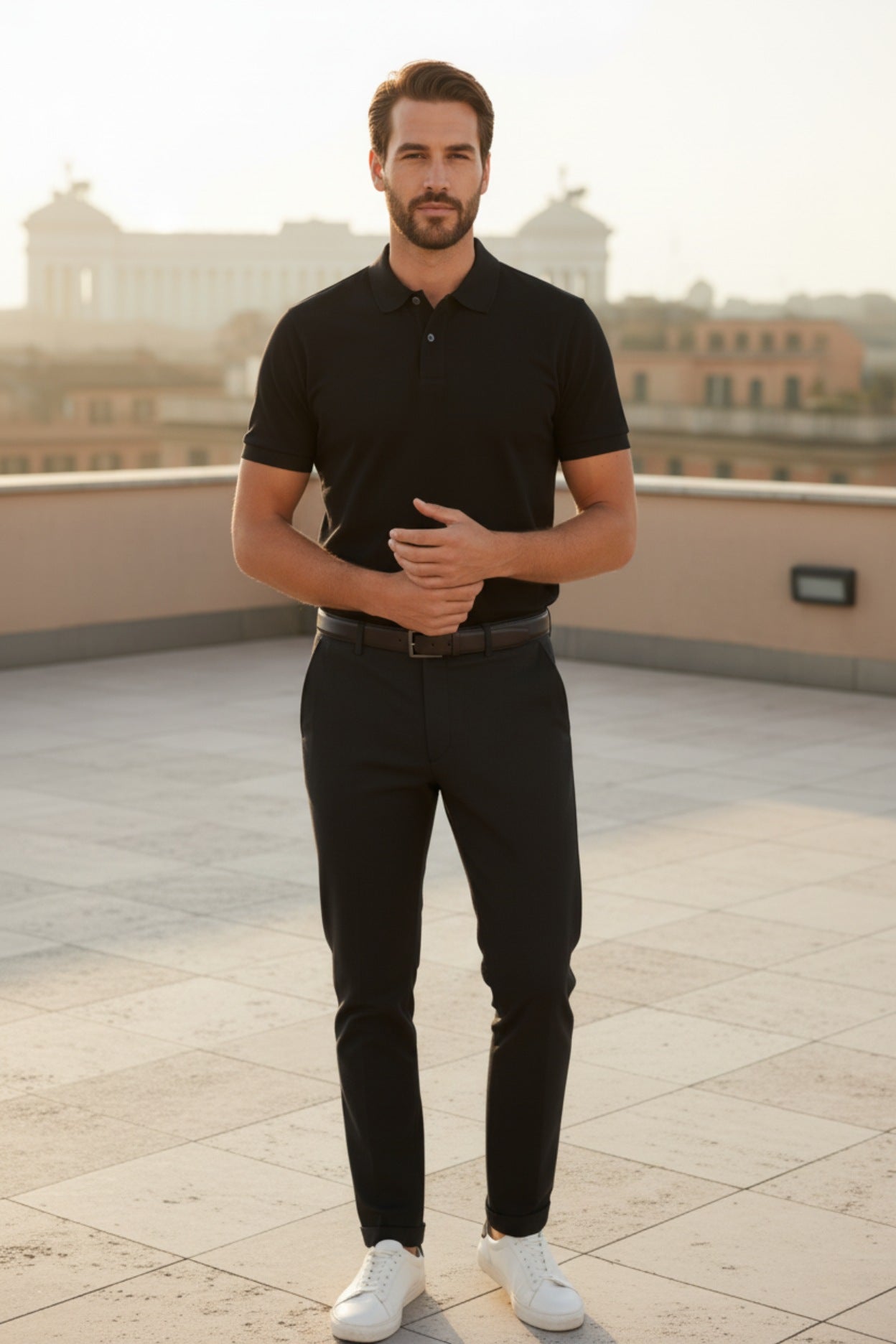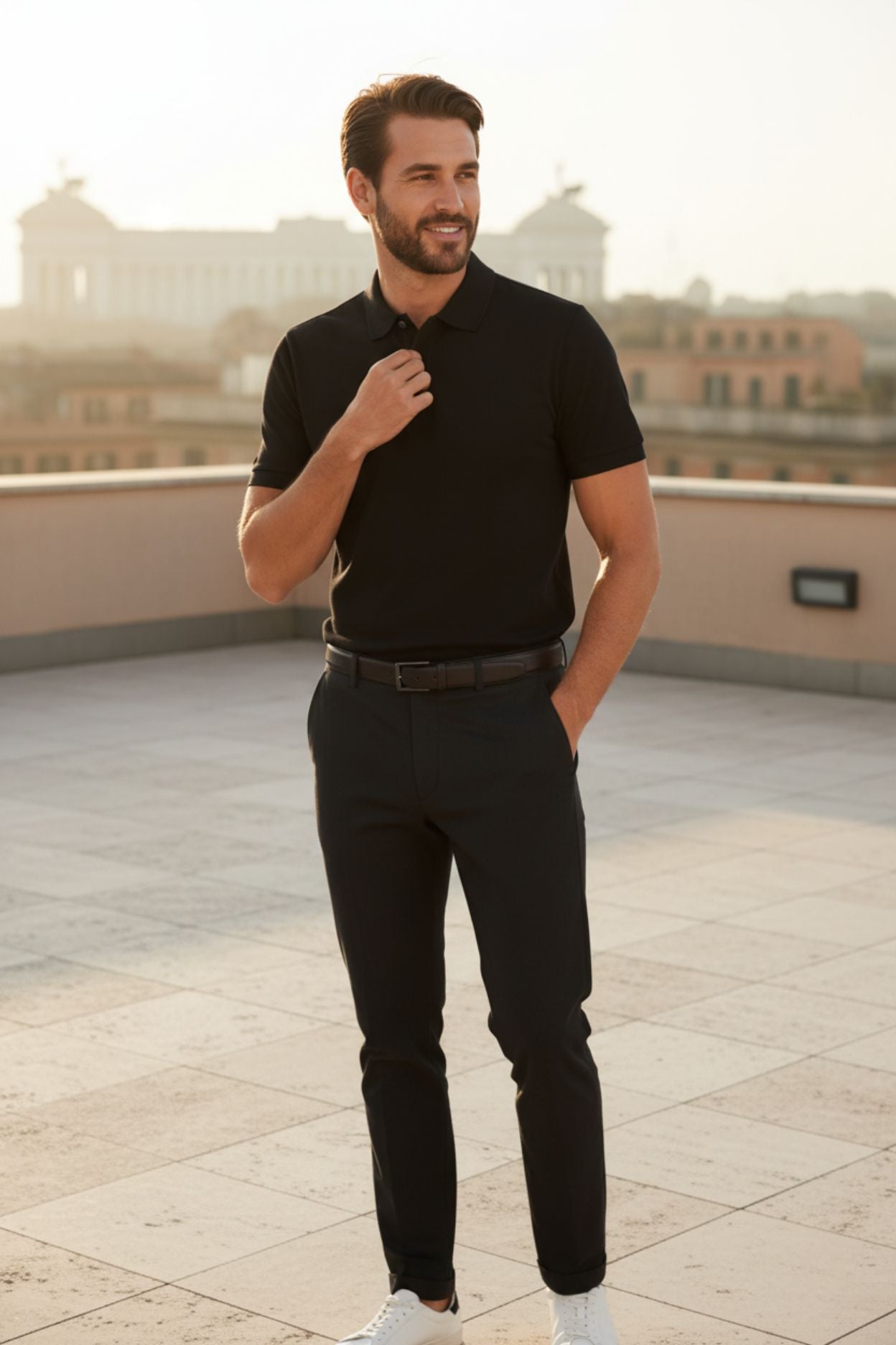 Refined ease for every hour, the Jet Black Polo brings subtle confidence and timeless style - a versatile essential designed to transition effortlessly from morning to evening and every occasion in between.