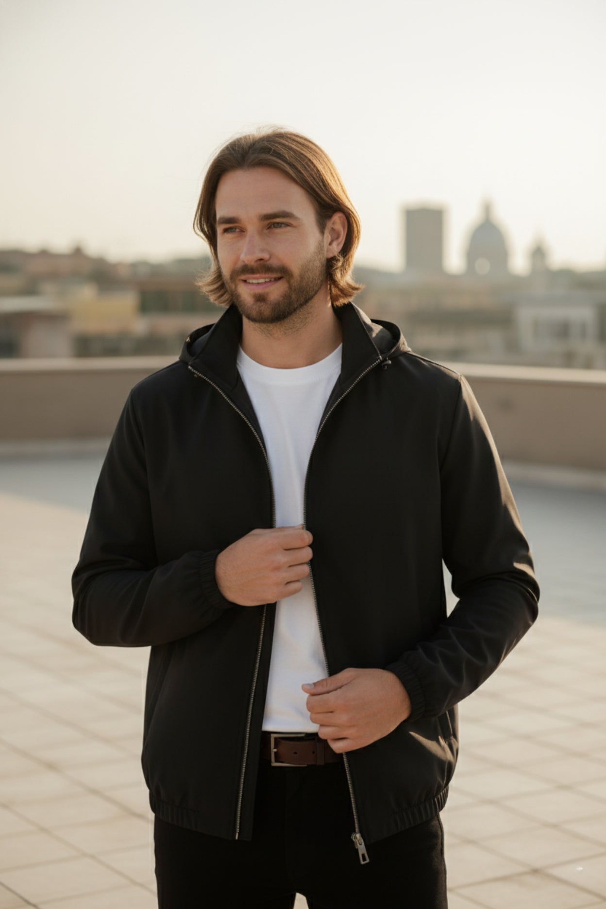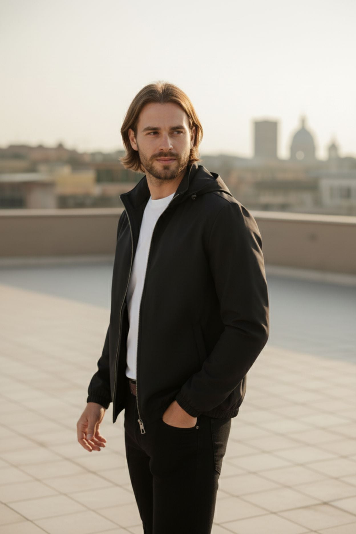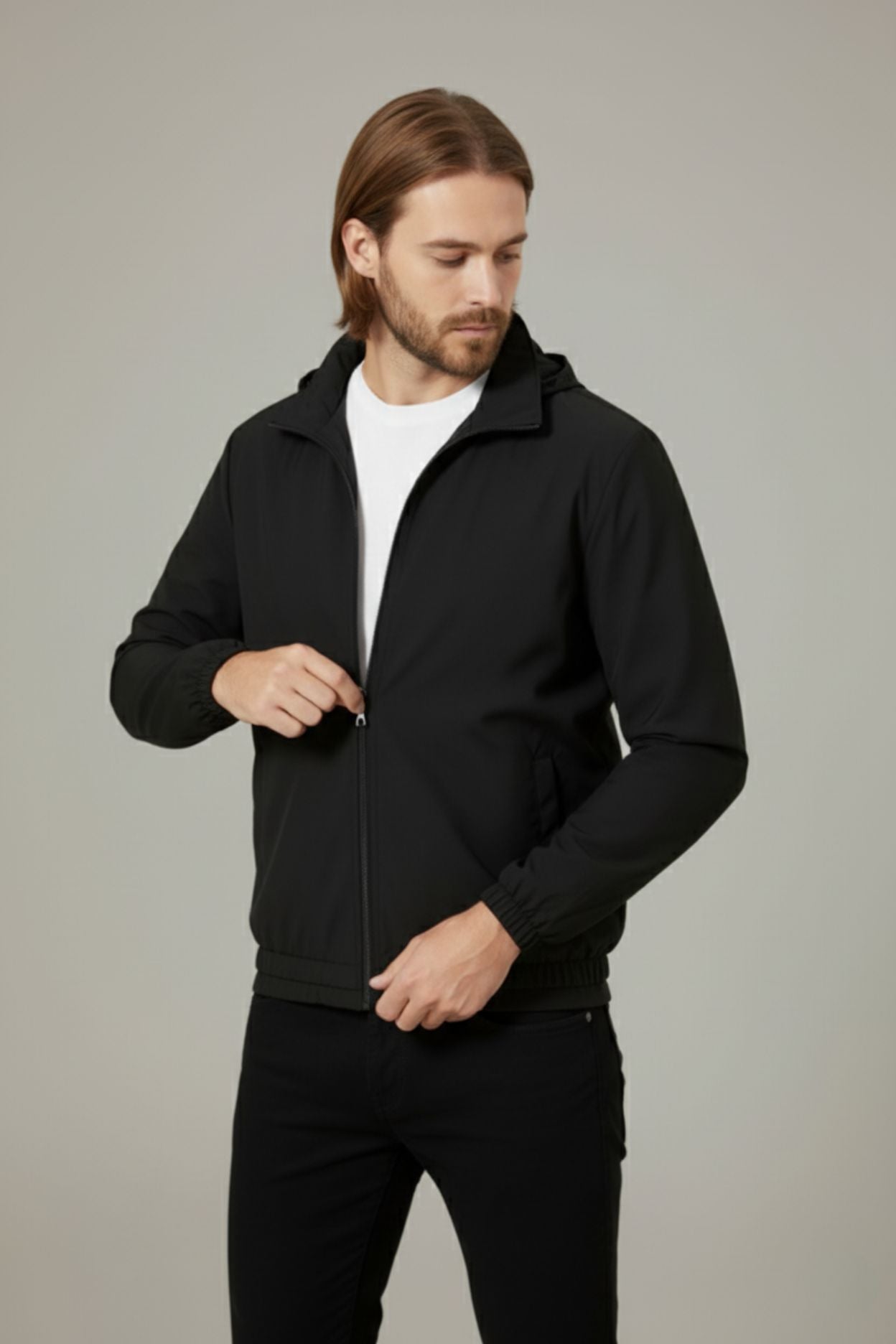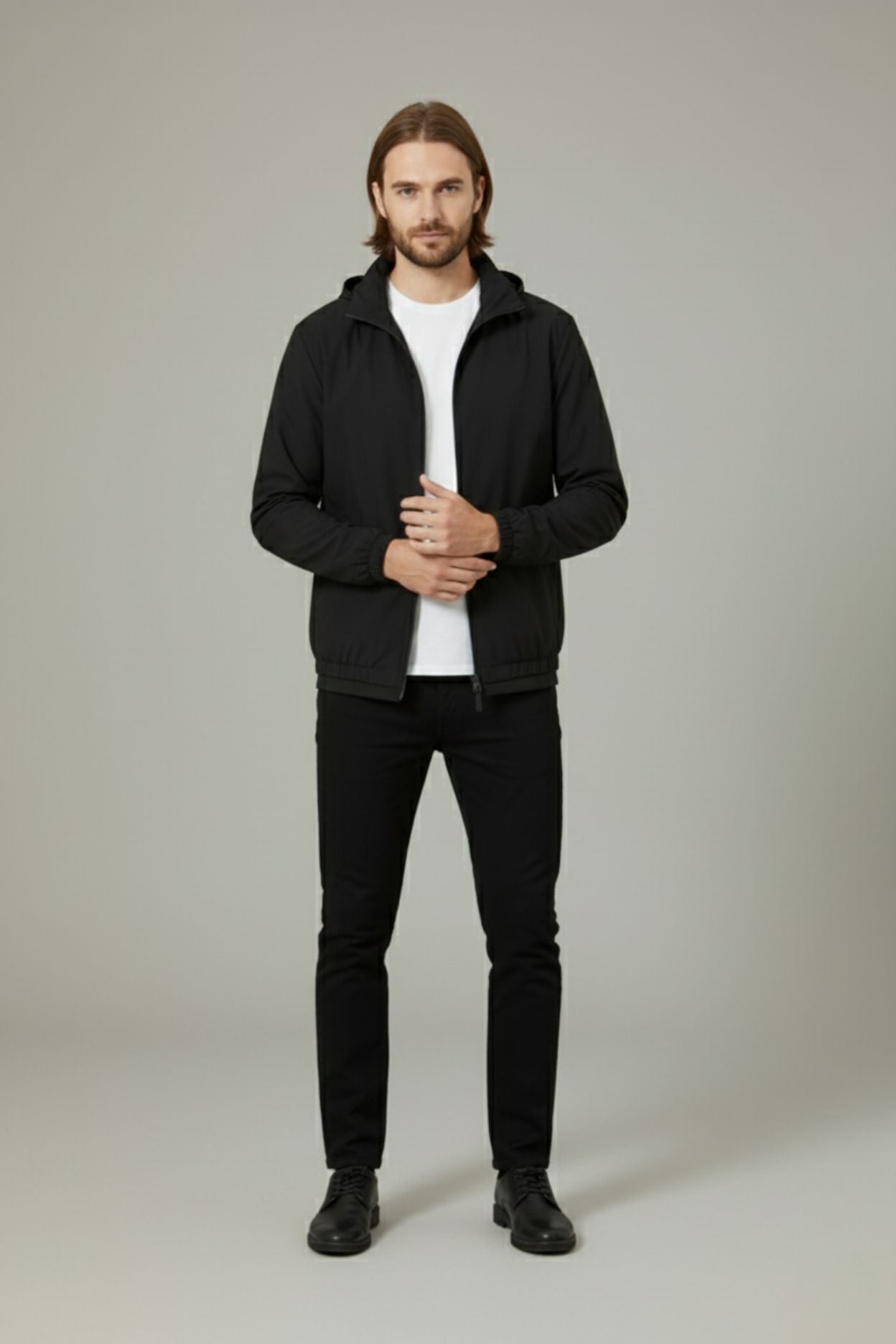 Purpose in motion. The Axton Jacket is precision-built for momentum - engineered calm under shifting skies. Every detail speaks in quiet authority.